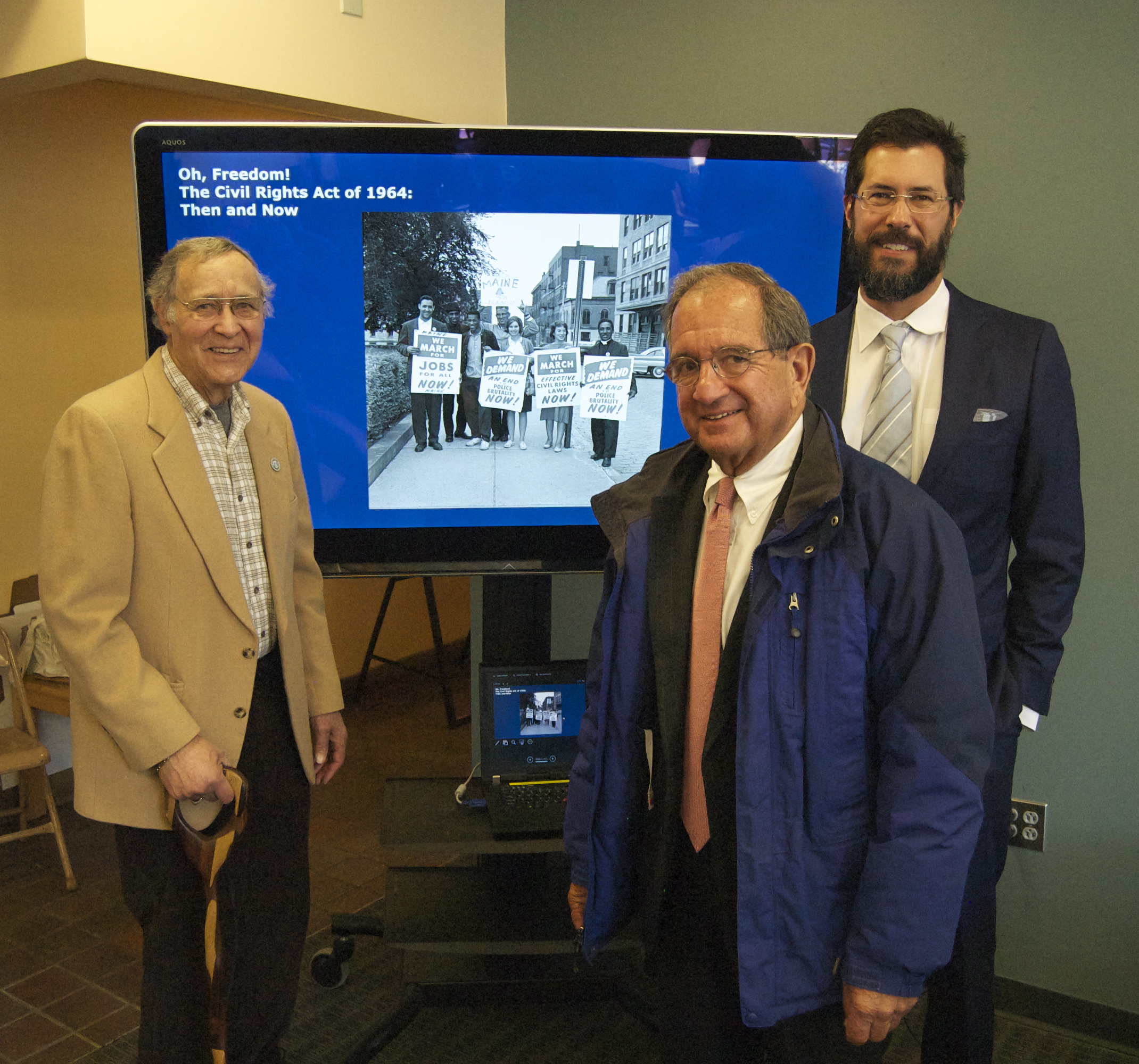 This past Thursday The Learning Commons hosted a panel discussion to commemorate the passage of this landmark bill. Organized by SMCC History Department Instructor Herb Adams, who is a former Maine State representative, and the Learning Common’s Lisa McDaniels, guest speakers: Attorney Harold Pachios, who was Assistant Secretary to Lyndon B. Johnson, the Honorable Gerald Talbot, First President of the Portland Branch of the NAACP and a Voting Rights Activist, and Attorney Zach Heiden, the Chief Counsel of the Maine Civil Liberties Union spoke of past and present struggles of achieving civil rights for all Americans.