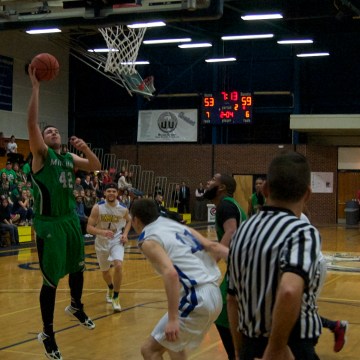 Brian Gatchell from U Maine Machias finds a seam in the defense and collects an easy 2. Machias would hang on for a 69-67 win earning a trip to the semi-finals and the honor of playing CMCC.