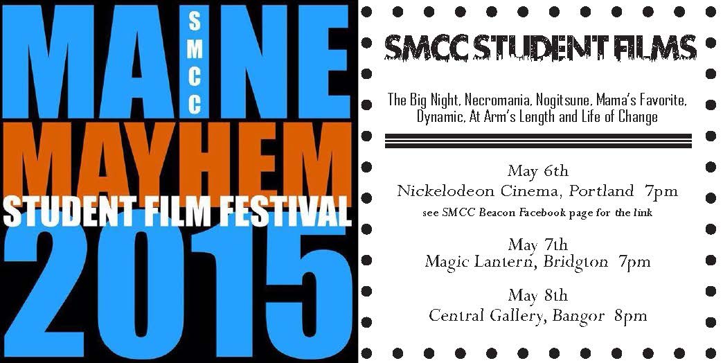 Campus News Maine Mayhem Film Festival By The SMCC Beacon on April 28, 2015 • ( Leave a comment ) Share this: Click to share on X (Opens in new window) X Click to share on Facebook (Opens in new window) Facebook Like Loading... Related Categories: Campus News