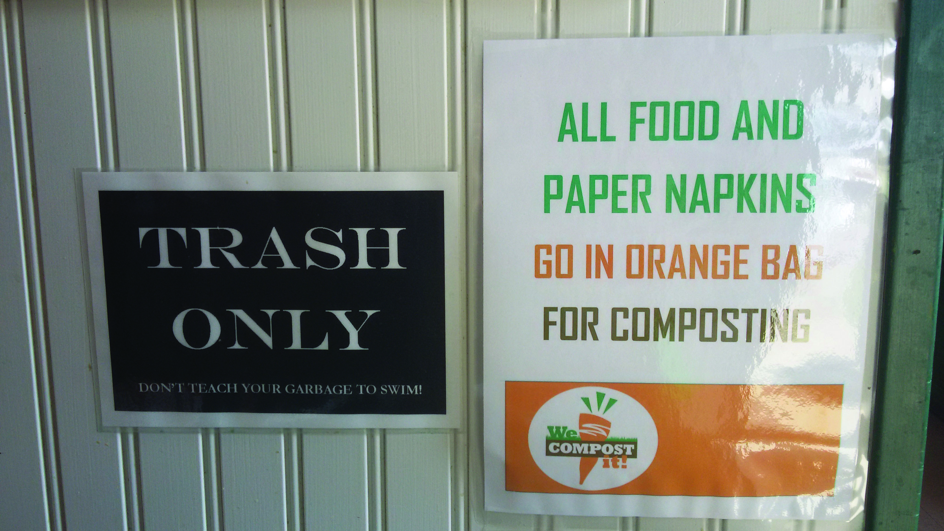 receptacle now stands by the trash and dish station in which students discard their food scraps.