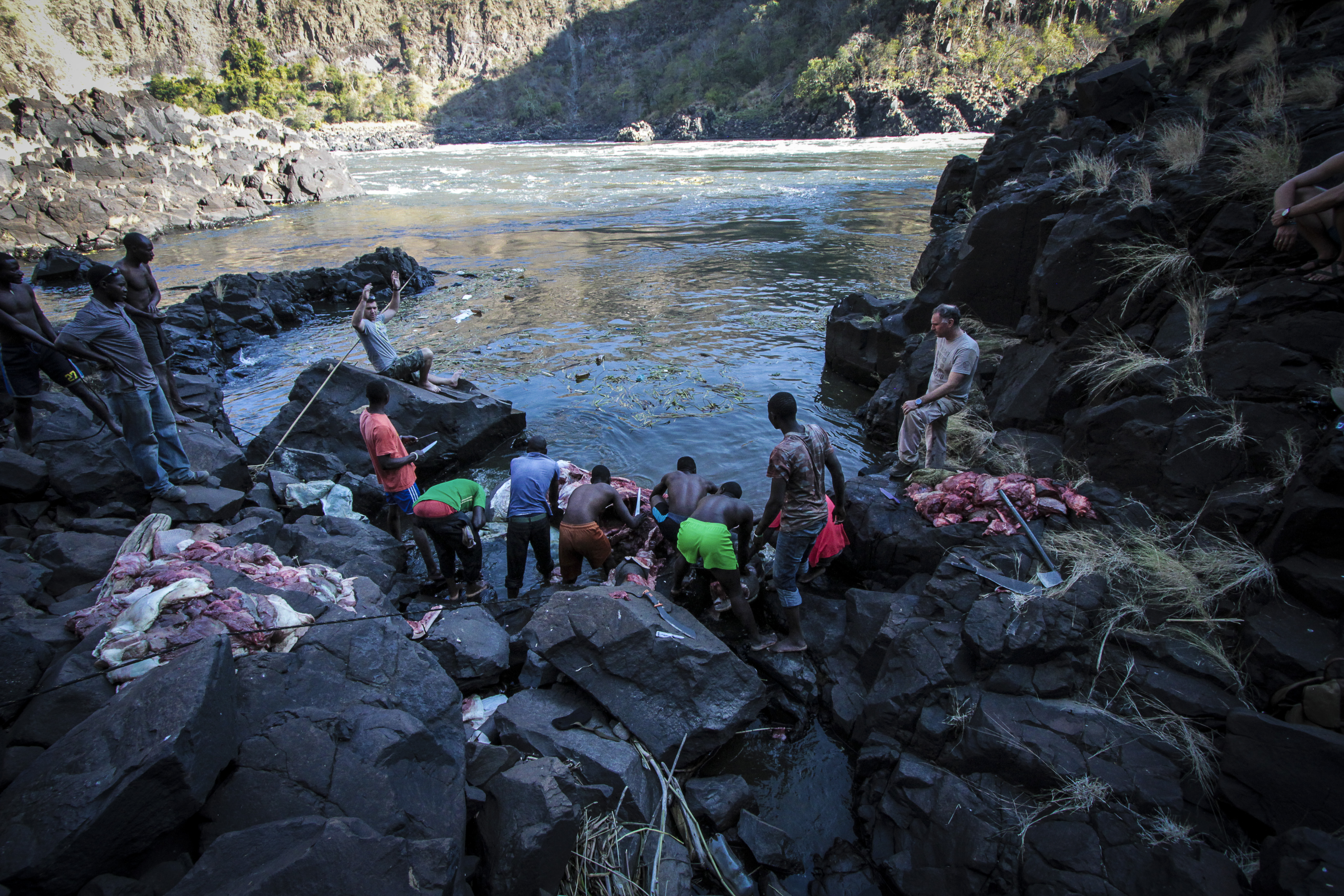 down the gorge to take pictures and video of the Nsongwe residents as they butchered the animal