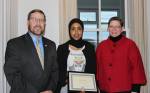 - President Cassidy and Dean Benteley with Leader of the Pack Zahra Abukar.