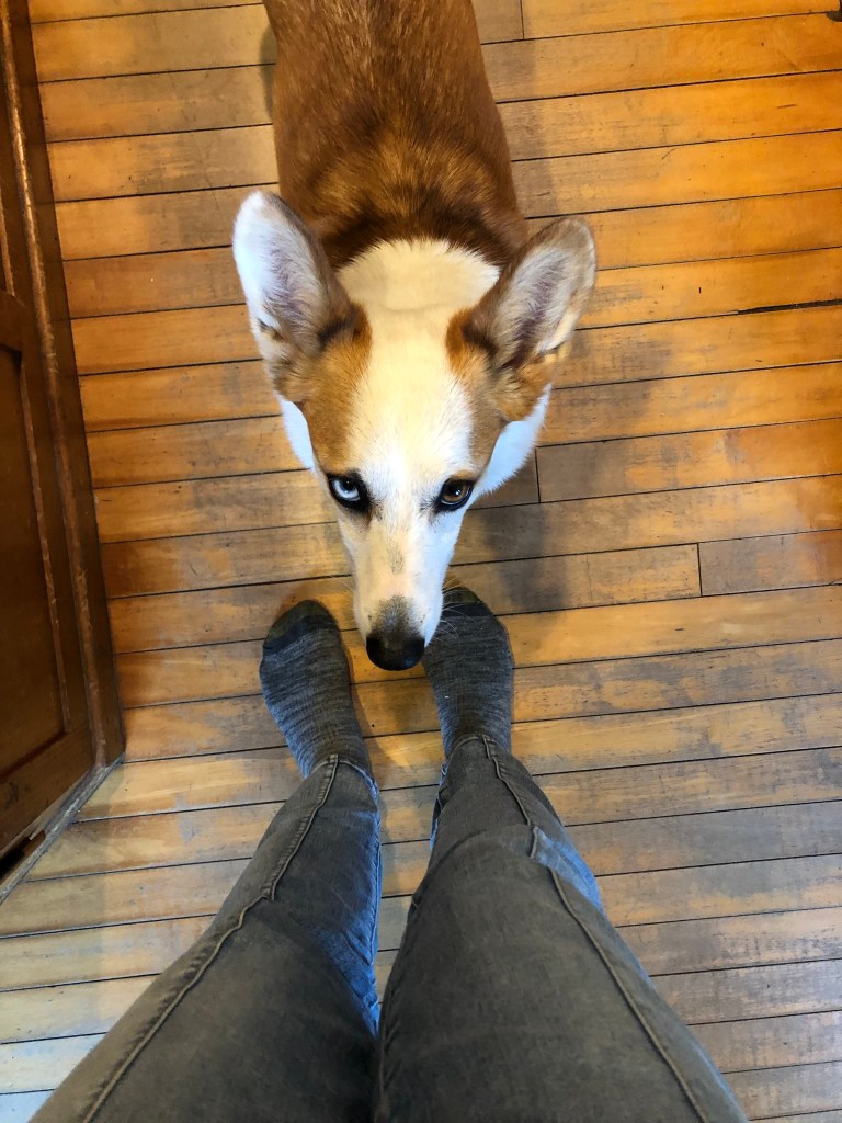 Corgis are herding breeds, mostly used for cattle and small animals, like sheep. Corgis have a bad reputation because herding dogs are usually nippy. They nip an animal’s back legs to get it to move while herding the livestock. So, they sometimes transfer that behavior to humans; it is just their nature. We got a Corgi because we had a lot more cows at the time, and we thought a herding dog would do the trick. Kemo, however, is apparently afraid of the livestock, and he only herds moths or cats. Kemo was named after Okemo mountain, known for its skiing. He is just a fun loving dog that can be nippy.