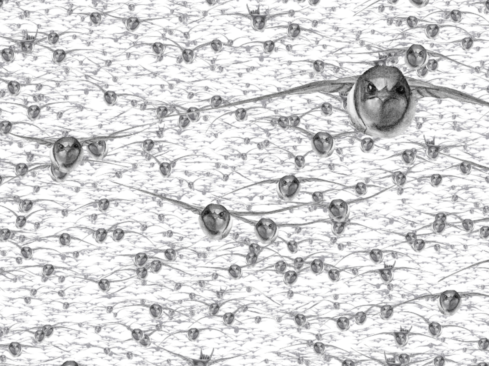 Depicts 183,000 birds, equal to the estimated number of birds that die in the United States every day from exposure to agricultural pesticides.