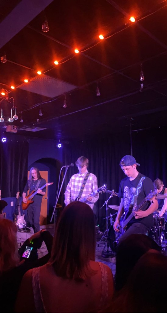 Sun Tiki Studios is an all ages live music venue where smaller artists, such as this band One Hundred Thorns, rehearse and perform. It sits on a busy street in Portland, just two blocks over from the University of Southern Maine Portland campus, and though it appears to be a small venue, the community it brings in is astonishing. One Hundred Thorns, formally known as Haze, is a heavy metal/rock band made up of four boys from Gorham, Maine. They started their band in school and quickly grew a fanbase. It was no secret that these boys have chemistry and their raw talent was unlike anything I had ever seen before. For such a small studio, they drew in quite the crowd, ranging from high schoolers, to college age students, to even grown adults. The energy was high, the music was incredible, and overall it felt as if there was no judgment within the crowd. Everyone was there simply to enjoy the music.