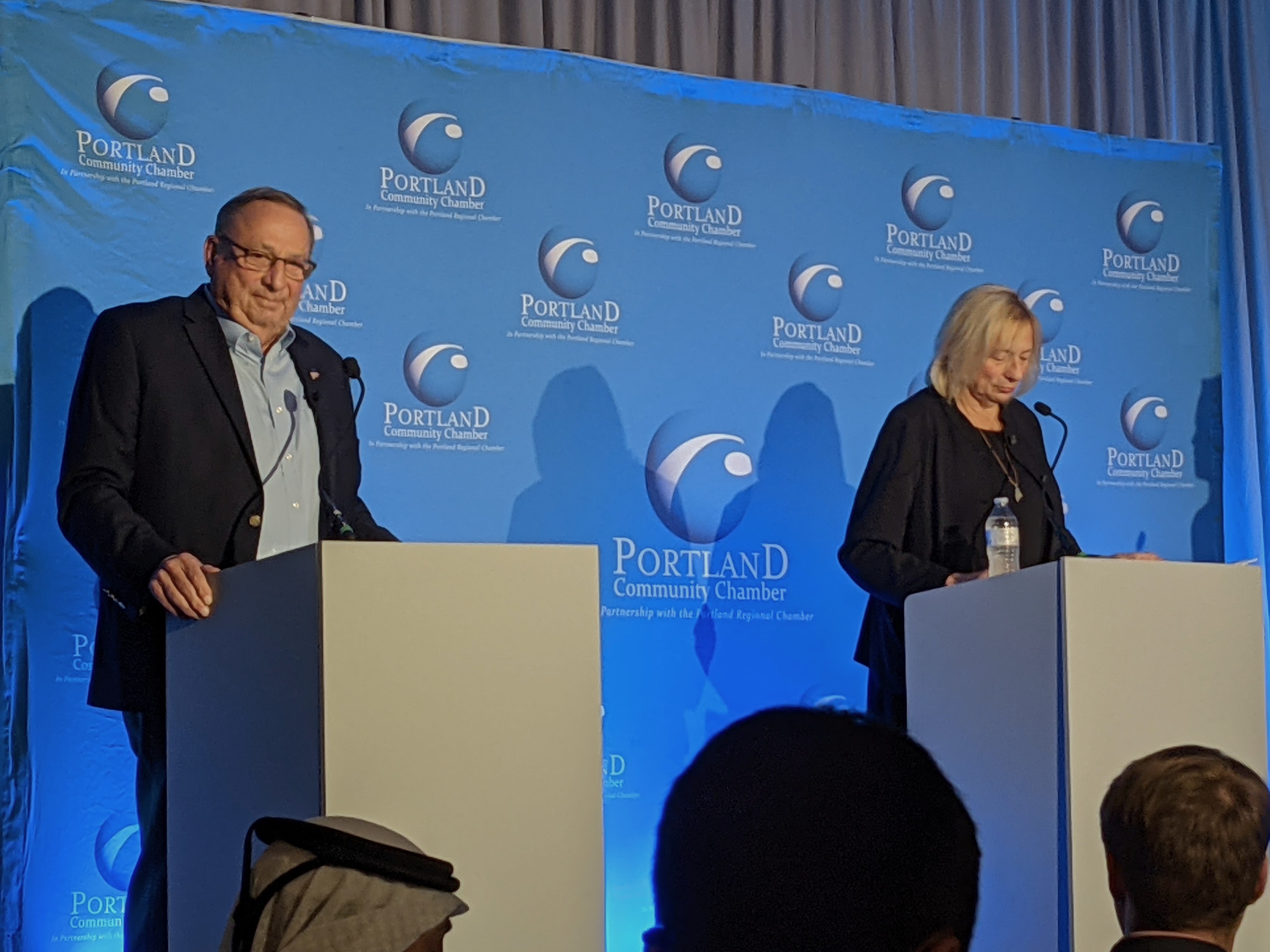 Thursday morning, October 6, the Portland Regional Chamber of Commerce hosted a gubernatorial debate at the Holiday Inn by the Bay. Incumbent Democratic governor Janet Mills was joined by the returning former Republican governor Paul LePage to talk about important issues that will be on the midterm ballot this November. The biggest topics were housing, taxes, and education.