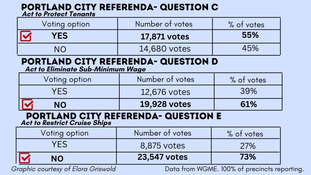Last Tuesday, citizens across Maine voted for who they want to represent them in the race for governor, as well as numerous local State House and State Senate races. The results from these races are in–the following infographics illuminate winners in the race for governor, congressional district two, congressional district one, Portland and South Portland city councilor at large, and all Portland referendum questions.