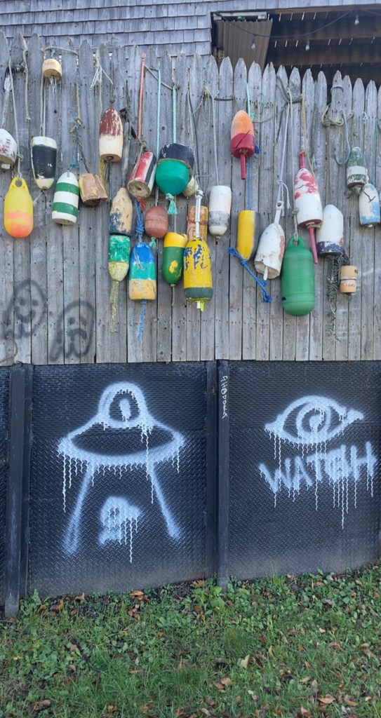 Walking along the water on an absolutely breathtaking path behind some houses, buildings, apartment complexes there is this one particular fence. Displayed on this wooden fence, someone had spray painted an alien. Yes, an alien riding in a spaceship. The line work, and the way that the spray paint drips down from the spaceship evokes such chaos, such beauty, such mastery and such skill.