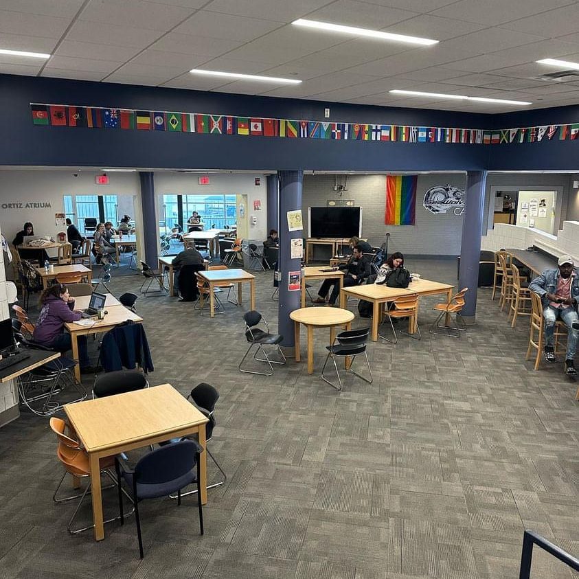 In the campus center right below the library is a popular spot for students called the “noisy” lounge. You will find a lot of students studying the primary function of the noisy lounge and what it is usually used for is a place for students to hang out with friends in between classes. For casually studying, the noisy lounge is a great place to get work done in between classes.