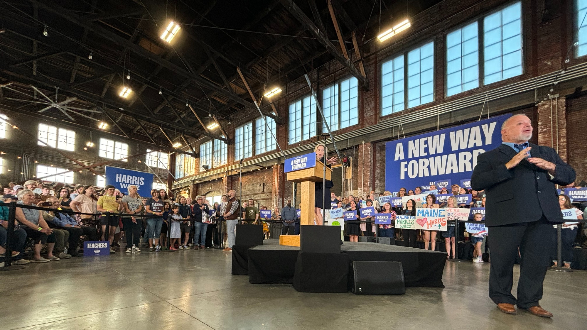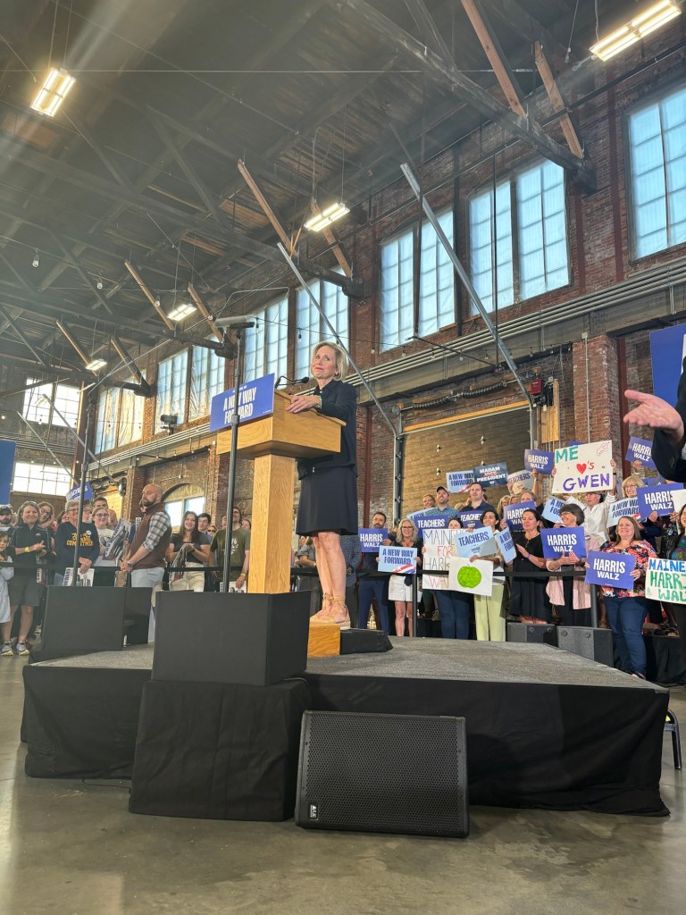 Voters came out in numbers with some creative signs, including “Pet Owners for Harris”, a dig at Donald Trump’s recent comment about immigrants in Ohio at Tuesday’s debate. Other signs read “Mainers for Harris”, and “Gwen Walz is my Midwest Princess”. The speakers hit all of the hot button issues facing the nation: Inflation, education policy, and the divisiveness facing the country.