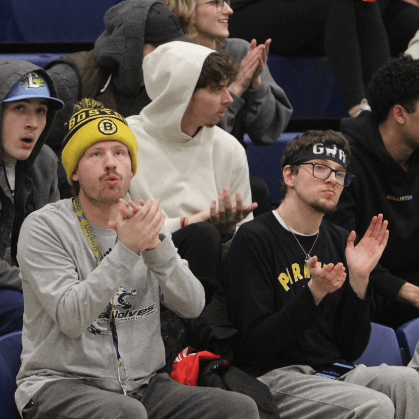 The two typically come in during warmups and sit in the front row of the student section, giving fist pumps and handshakes to the players. Justin’s favorite part of the game is “getting to meet new people and making new friends,” while Sumner’s is “seeing the players ball out.” Once the game starts, you can see Justin waving his hands to motivate the crowd and Sumner fist-pumping after an impressive dunk. As former player Jack Pyzynski said, “Sumner and Justin are one of the biggest home court advantages you could ask for. They come to nearly every home game and their energy is always contagious. Those guys are the G.O.A.T.s.”