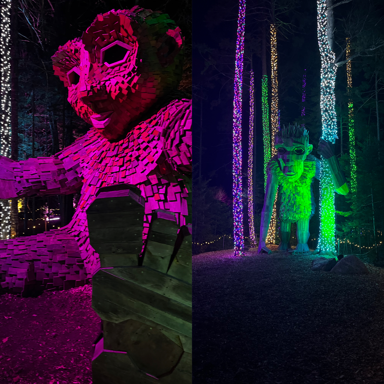 If that’s not enough, then on top of that, there’s also the history of the giant trolls formerly known as the “Guardians of the Seeds”. They’re unique sculptures made with recycled materials created by Denmark artist Thomas Dambo. They tell a creative folk story about the importance of protecting nature and are a unique way to engage people in seeing the world with renewed whimsy. Some of these giant nature guardians will also be lit up this season. In the past, they’ve had both Roskva “The heaviest, hardest, and strongest of the trolls,” as well Lilja “ The youngest of the trolls,” decked out in mystical holiday lights.