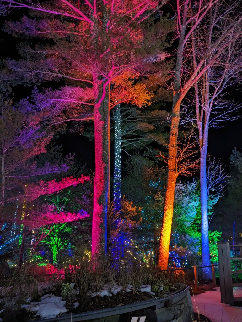 Combining that with the majestic trees lit up in magical lights and colors. The whole place feels like you walked into a magical fairytale land.