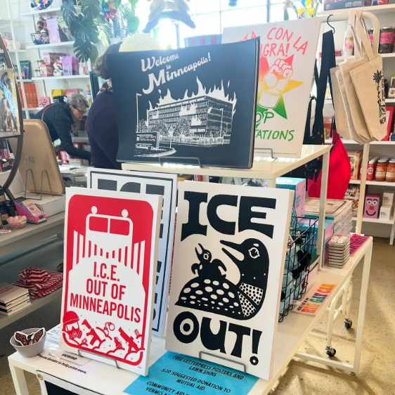 In response to Operation Metro Surge, residents of the Minneapolis area—including both local businesses and city governments—banded together to provide support for their neighbors. Minneapolis schools extended their opportunity for virtual learning, allowing flexibility for young learners with safety concerns regarding ICE. Local businesses shut down, organized mutual aid efforts, and became safe havens: secondhand clothing store Tandem Vintage hosted a diaper drive, coffee shop Moona Moono became a drop site for an emergency food drive, and printing studio and shop Bench Pressed hosted a mutual aid pop-up which raised over $7,000 for legal help, along with many others supporting their communities.